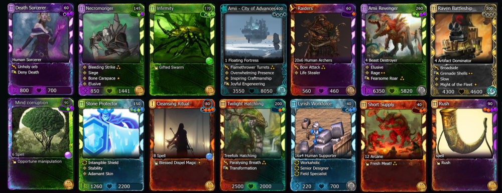 Welcome to the 2nd Official Card Design Contest! "Only that which dreamt of or written about by mortals, only that which had journeyed into the realm of legend, could be created." (Lands and Regions, page 3) In this contest, you are called to submit your idea for a new card, which will be presented to high-ranking jurors for judgement. The jurors for the contest will be @RadicalX, @WindHunter and @Bini Inibitor – for those who don't know, these are the SR team members with real decision-making power about what makes the cut for new content. Important note: Of course there is no obligation for the SR Team to make any entry into a real card – but a good idea that really fits into the game has a lot of power. All card designs will be heard, seen and judged anonymously and without any barrier of entry. The contest begins with the publication of this post and ends on the 25th of October 2025, 23:59 CET. Submit your entry… as a comment on this thread, through Discord (direct message to Kapo#0116), or a Forum direct message (to @Kapo). I will anonymize the entries, present them to the jury, and after a voting and discussion phase, the grand winners will be revealed on a stream 16th of November. Additionally, all other winners and entries will be revealed here on the forums. As seen in the video, we mean serious business: Three entries of the first card design contest made it into the game, and the designers valued the creativity and ideas of several other entries. You might want to check out the previous card design contest for inspiration. Rules: You are limited to a maximum of TWO entries - if you win on both, you will receive the higher prize. In case you submit more than two, the last two received entries will enter the contest (unless you state otherwise) Your idea must be a NEW card idea/concept (NOT a rework of an already existing card or a Promo card), be aware that this the main criterion for jurors ONE of your submissions may be a Meme card, but be advised that the winners on the Meme tier are highly limited and not the focus of this contest Units and buildings MUST be fitting for an already existing model (this is a technical limitation, but re-texturing can do wonders) Unfortunately, we also can't allow for Fire/Frost or Rainbow-cards (or any other outside the known factions, due to technical and/or conceptual limitations) You are asked to create the fully upgraded version (see below: Things you don't need to add) By entering, you are giving away your card idea with permission to modify it – the final design may differ from your submission here, and may be used in any way the team sees fit You are asked to use the following template: Things you don't need to add or care about: Hit points and attack-numbers Rarity Upgrade Levels (submit a fully upgraded design) Number of Charges Artwork for the card (you may provide one, but this does not affect your winning chance) At the end of the contest, we may make a compilation of the entries – by participating, you automatically agree to be included in that. Suggestions: In preparation for this contest, we asked the jurors to drop some hints on what is needed for a good design. You might not want to create a new super-powerful card, but a card that's interesting. Maybe it fills a special niche case in a faction (like Burning Spears), or it is special or meme-worthy (like Easter Egg). Balance is important! The best cards are useful, fill essential roles, and are not overpowered. If you design a T1 or T2 card, think about PvP implications. You might want to check out the first card design contest and its entries to be on top of previous, already submitted ideas. Fit the card to the faction: Think about the intentional strengths and weaknesses of each faction. Potentially, you see an extremely missing card in an arsenal, but that could be part of that faction's design. Also, breaking core rules of the game requires a very, very, very good reason. For both topics, see: Design Philosophy Document. You are allowed to submit a legendary (neutral) card, but please note those are much harder to design and balance properly. You may present some optical aid to the jurors: On https://smj.cards/creator, you can easily create your own card-mockup: (But please be aware, even in AI image generating times, a cool presentation will not help you win. It's the idea that counts!) Voting Criteria and Prize Tiers: PLATINUM TIER Platinum tier are creations that will actively be considered to be implemented into the game. They must not be all-around perfect, since someone who is not on the SR team is unaware of all the steps required when implementing cards. Platinum entries are cool, captivating and would be a great addition to the game. Platinum tier winners will win a low-grade promo of choice (e.g., Fallen Skyelf, Lyrish Knight or Rogan Kayle) or Ultra-Rare of their choice of similar value (Infect, Forest Elder etc.). Should your card someday make it into the game, you will get a copy for your own collection. GOLD TIER Gold tier suggestions are cool and interesting suggestions, but are lacking significantly in ONE (but only one!) way: Unbalanced design with no way to repair that Clearly impossible to implement Too niche to be worth the implementation Not fitting for any faction or into the game Not really a fitting, existing model in the game Too draining on SR team resources etc. Gold tier winners will win two booster-packs. SILVER TIER Silver Tier suggestions are solid suggestions, but are lacking in more than one way to make it into the game. For examples of what could cause issues, see the mentioned list above. Silver tier winners will win a booster-pack. MEME TIER While it is not the focus of the contest, even fierce Skylords value some funny memes. Very few selected, exceptional meme entries will be presented as Meme tier winners. Meme tier winners will win a Mini Booster and a Juice Tank. We are looking forward to your designs! If you have any qu