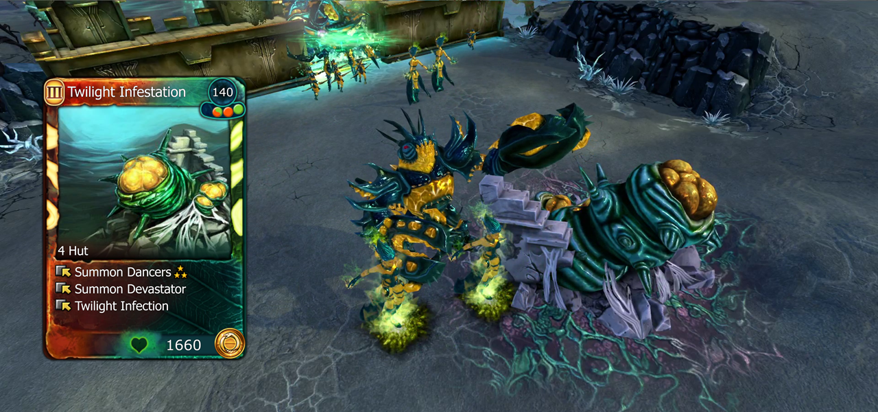Greetings Skylords! A new month; a new Community Update! It's time to bring you up to speed with everything going on in Skylords Reborn! • Q&A with Windhunter and Majora Last Friday we hosted a live Q&A on Twitch. With the introduction of seasons, modifiers, and a new campaign map, we figured it was a great time to sit down and go a bit more in depth about the creation of our latest content, and of course answer your questions! You can rewatch the Q&A below. It contains a lot of information about campaign maps, card design and our season structure. We also talk about our second season and which new cards you will be able to collect. • Season 1 - Primordial Fire: Month #4/4 Today marks the start of the final month of our first season: Primordial Fire. This month won't add any additional challenges. It is meant as a break and/or catch-up for players to complete any challenges they might have missed or failed to complete the past 3 months. Once September ends, so will the Primordial Fire season. This will lead to the following: - Seasonal Quests for Season 1 will be de-activated and can no longer be completed. - Players can still view the quests and leaderboards of the season, including their progress. - Final leaderboard standings will be updated and distribute rewards accordingly. - All completed but unclaimed challenges will automatically be claimed, and progress rewards accordingly. - Scorchlings, Hellhound and Treasure Wagon will drop from boosters. - The promo Sunderer, if not yet earned, will be purchasable with Relics in the Relic-shop. - Unearned cosmetics (titles, borders, banners and the Forge-skin) will be purchasable with Relics in the Relic-shop. - You can continue to earn Relics through Season 2, or by beating the infected map of the week. We hope players enjoyed the first Season, and were able to earn the rewards they were playing for. While we have already incorporated feedback from Season 1 for our future seasons, we will continue to monitor feedback and adjust to make the system as enjoyable as possible for everyone involved. But for now, good luck with your final challenges Skylord! • Season 2 - Natural Selection Meanwhile, we are preparing the start of our second season, which was announced during our Q&A: Natural Selection! This season will be focusing on the Nature and Twilight factions. It will once again last 4 months, and is currently scheduled to start October 1st. Players will be able to earn 3 new cards, and a unique promo card. Today, we are revealing which new cards players will be able to collect during the season, but we will keep the promo card a surprise until the season starts. With it being the most requested promo in our Feedback Survey last year, and great work done by our artists, we are sure players are going to love it! For Season 2, we've made changes to the challenges and reward track based on player feedback. Some of these adjustments were already discussed during the Q&A, and we’ll share more details in the next Community Update. For now, let’s talk about the new cards! • New Card Reveal: Twilight Whisperer There are already many Twilight cards in the game, but one of the most frequently requested has always been the Twilight Whisperer. First appearing as a powerful enemy on the very first map, Encounters with Twilight, the Whisperer has long been the bane of Skylords relying on ranged units. Its unique blind effect makes it a formidable foe, and soon you’ll be able to add it to your own line-up. After all this time, making its debut as a player card: Twilight Whisperer! Rejuvenate Every 5 seconds, unit triggers a heal chain that may affect up to 3 friendly units. The first one will be healed for 150 life points while each of the following targets will be healed for 40 life points less. Blind Every 10 seconds, unit casts a ball of light that blinds enemies in a 12m radius around the target for 10 seconds. Has a long range of 40m. Shhhh! If the unit is transformed, it will create an anti-magic zone of 20m where enemies can neither use ranged attacks nor special abilities. Lasts for 10 seconds. Transformation The unit is infected with the Twilight Curse, activate to start the mutation process and choose a Twilight unit from the current deck to be transformed into after 0.5 seconds. The current deck must contain at least one other Twilight unit whose orb requirements are met! Has a 10 seconds cool-down after the card was played out or previously transformed. Design notes: Twilight Whisperer is an iconic enemy we have long wanted to add to the game. The question was always where it might fit. Twilight's T2 cannot have a strong ranged attacker due to PvP concerns, and an M-sized support would likely be lackluster in T3 & T4. We finally solved the riddle by giving the unit its iconic blind effect but without it dealing any damage. This way the unit is a pure support unit. To facilitate its role as a backline healer who can also CC enemies, we have given it a 40m range for its Blind attack. This way Whisperer can sit safely behind its allies while still reaching enemies it wants to disable. Lastly we wanted to give it a fitting Transformation ability and we thought a temporary Mark of the Keeper effect fit the unit's overall identity well. Twilight Whisperer will release as a season reward for our second season. • New Card Reveal: Twilight Infestation Summon-buildings are quite popular among the player base. After the positive reception to Bandit Hut, we began exploring other potential candidates that could make a good fit. With the existing Twilight unit line-up already being quite large, and with no plans to release separate player cards for Twilight Dancers and Twilight Devastators, we saw this as the perfect opportunity to put them into players’ hands regardless. We’re excited to reveal: Twilight Infestation! Summon Devastator Activate to summon a Twilight Devastator. Will no longer summon units once a population of 150 would be