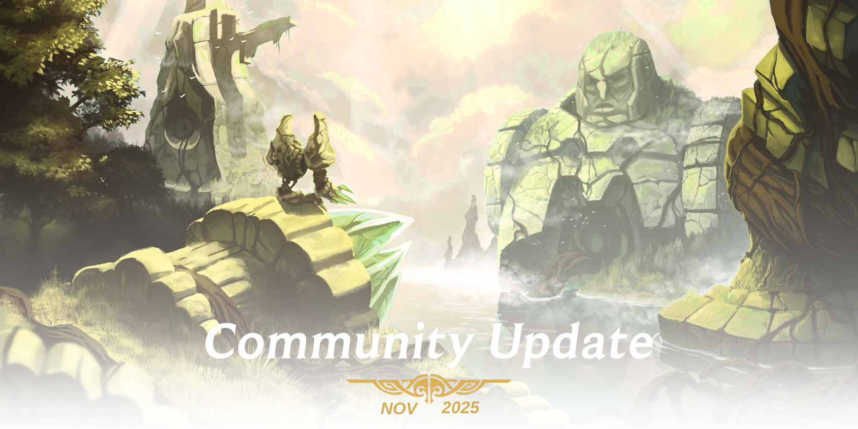 Greetings Skylords! A new month; a new Community Update! It's time to bring you up to speed with everything going on in Skylords Reborn! Another packed community update! This time, we will take a quick look at the newly unlocked seasonal challenges, changes to the relic shop prices and a new shadow card reveal. We are also looking for new voice actors, so if you have ever wanted to immortalize yourself in a game, now's your chance! Before we get to the meat and bones of this community update, allow me a quick introduction. • Something About Me Last month, we announced that our Community Updates have a new writer going forward. Let me properly introduce myself as your new Community Manager. I joined the Skylords Reborn team in 2021, after I read that without map developers, no new official maps would be made. I could not let that happen, and I joined as a Map Artist. That role slowly evolved into a Map Developer, and later also into an amateur Map Designer. I have worked to varying degrees on all released map content so far, and I actively work on new campaign maps and forge skins. I will keep my role in the map department in addition to this new title. So we can bring you new map content without any delays. Now, as a new community manager, it is my pleasure to celebrate this occasion by providing my first (mini)booster code for all of you! NEWS-HERI-FFIN-TOWN Trying to buy some goodwill right at the start, eh? The code is valid until the 1st of December. But enough about me, let's move on to more interesting things. • Changes to Seasonal Shop Prices Now that our second season has begun and the rewards from the previous season are now available in the relic shop, we have received some feedback about the relic costs. Some players only missed the Promo Sunderer, or other major rewards, by a few points, but they still need to pay full-cost for these cosmetics in the shop. This hardly seems fair, so we will be prorating the item prices in the shop. What this means is that every item in the shop connected to a season (including the Promo) will be discounted by a percentage proportional to the amount of progress a player made in the reward track of that season. This progress will be based on how close a particular player got to receiving the Promo reward. E.g. If you earned 60% of the points in the Fire Season that it would take to unlock the Promo Sunderer, all Fire Season cosmetics you missed will cost 60% less, forever. This discount caps at 70% for all cosmetics, except the final title and the top 100 border reward, which caps at a 50% discount. This change affects all the current and future items in the seasonal shop that were a part of the seasonal rewards - profile cosmetics, titles, forge skins and promos. Players who have already purchased items from the shop for full price will be reimbursed for the relic price difference. We will introduce these changes in a small patch in the coming days. • New Seasonal Challenges As the new month dawns, new seasonal challenges have been unlocked. Let's take a closer look at them now. 3.1 - Win different campaign maps or featured community maps on advanced difficulty or higher. No spell cards are allowed. All cards played must be Nature or Twilight cards. These restrictions apply to all team members. 3.2 - Win the 1-player featured community maps Nyxia and Aeglos Fortress on advanced difficulty or higher. All cards played must be Nature cards. 3.3 - Win the 1-player scenario The Treasure Fleet and the 4-player scenario The Guns of Lyr on advanced difficulty or higher. All enemy buildings in the map must be destroyed. All cards played must be Nature or Twilight cards. These restrictions apply to all team members. 3.4 - Win the 2-player scenarios Nightmare's Shard and Nightmare's End on standard difficulty or higher. Only cards of Tier 3 and below are allowed. All cards played must be Nature or Twilight cards. These restrictions apply to all team members. 3.5 - Win the 4-player scenarios Titans and Raven's End on standard difficulty or higher. No towers, fortresses, or shrines may be played. All cards played must be Nature, Twilight, or Neutral cards. These restrictions apply to all team members. 3.6 - Win the 1-player campaign scenario The Soultree on advanced difficulty or higher. No T2 cards may be used. All cards played must be Nature or Twilight cards. As usual, the challenges remain available until the end of the season. • How Does It Work - Root Network Since this season's theme is Nature and Twilight, we thought it best to remind the players of a video explaining the root network - the unique and complex ability of the Nature faction. It can be tricky to understand and setup, but the pay-off is oftentimes very much worth it. • Yearly Halloween Event The season of Halloween is upon us! That means the yearly time-exclusive achievements are back on the menu! Win the featured community PvE map Spooky Giants on expert difficulty to get Promo Jorne! The achievement is available until the 10th of November. Win the featured community PvE map Spooky Encounters on expert difficulty to get the Halloween Pumpkin profile picture and a Lost Souls booster pack! The achievement is available until the 4th of November. Please note, the rewards can be collected only once per account. • New Card Reveal: Devourer Since we started releasing new cards in December 2021, every existing faction in the game has received at least one new addition to its roster with the exception of Shadow. This occurred mostly because other factions were in more dire need of new cards than Shadow, which was one of the most viable factions when the game was rereleased and which also had plentiful fodder for reworks like Plague, Altar of Nihil, and Infernal Chain. With the upcoming release of Devourer, the Shadow famine is at its end. Behold, the Devourer! Please note: We are still working on the card. While we are generally happy with it, numbers and effects might still change