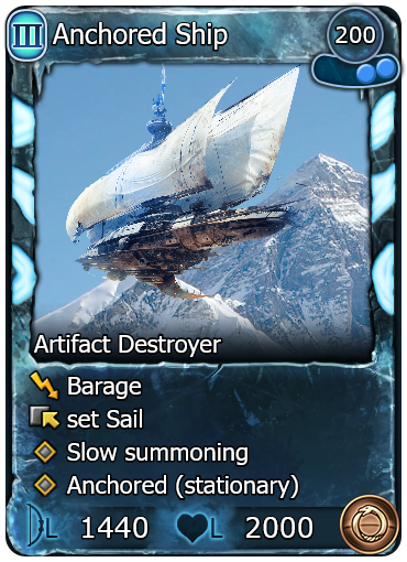 Explanation of idea behind the card: Frost lacks of interesting towers/defences on t2... so idea of stationaty flying ship that can be summoned mid fight for holding the ground should be fun and interesting in PvE... in PvP high cost should make it non broken.