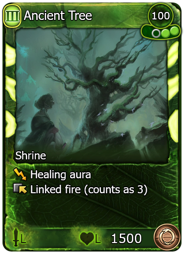 Explanation of idea behind the card:  Alternative for Thonrbarks at t3. Slightly lower cost and without of risk of draining the pool when enemies will pass by - but cant fight. Big but weak healing aura for active defence purposes (units engaged in fight or hovering skyelfs), Other affinity could make units in range move faster for logistic purposes.
