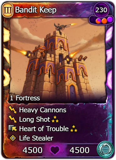 Bandit faction (just bandit, not fire/shadow) has very few building and spell cards. The main goal of "Bandit Keep" is to: